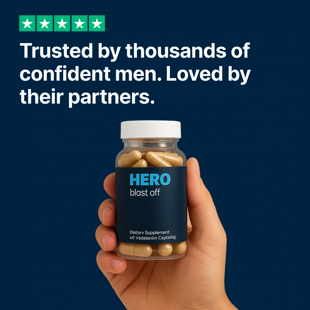 Take one HERO Blast Off capsule with water about 30 minutes before you need to be at your best. Most users feel the effects within 15–20 minutes. Get ready for a powerful, unforgettable experience.