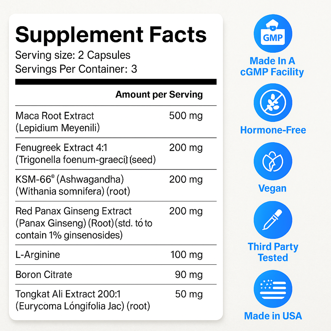 Maca has been traditionally used in Peru to support libido and stamina. Modern studies show it may help enhance sexual desire and improve semen quality without affecting hormone levels.